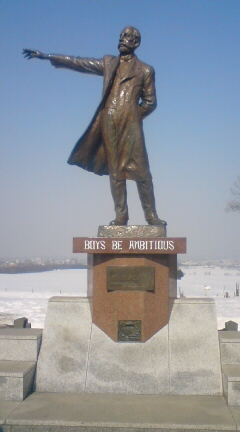 銅像の後ろでスキーもどきをやった方がたのしかた
